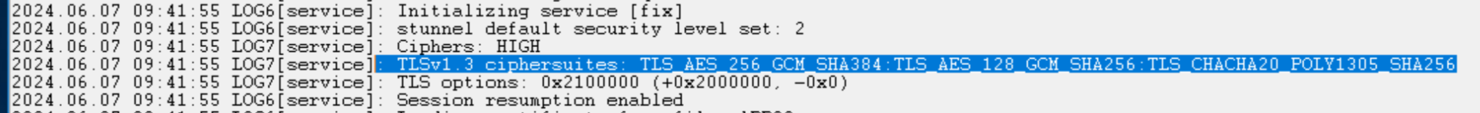 However after rebooting the server and starting stunnel – the old ciphers are still being used